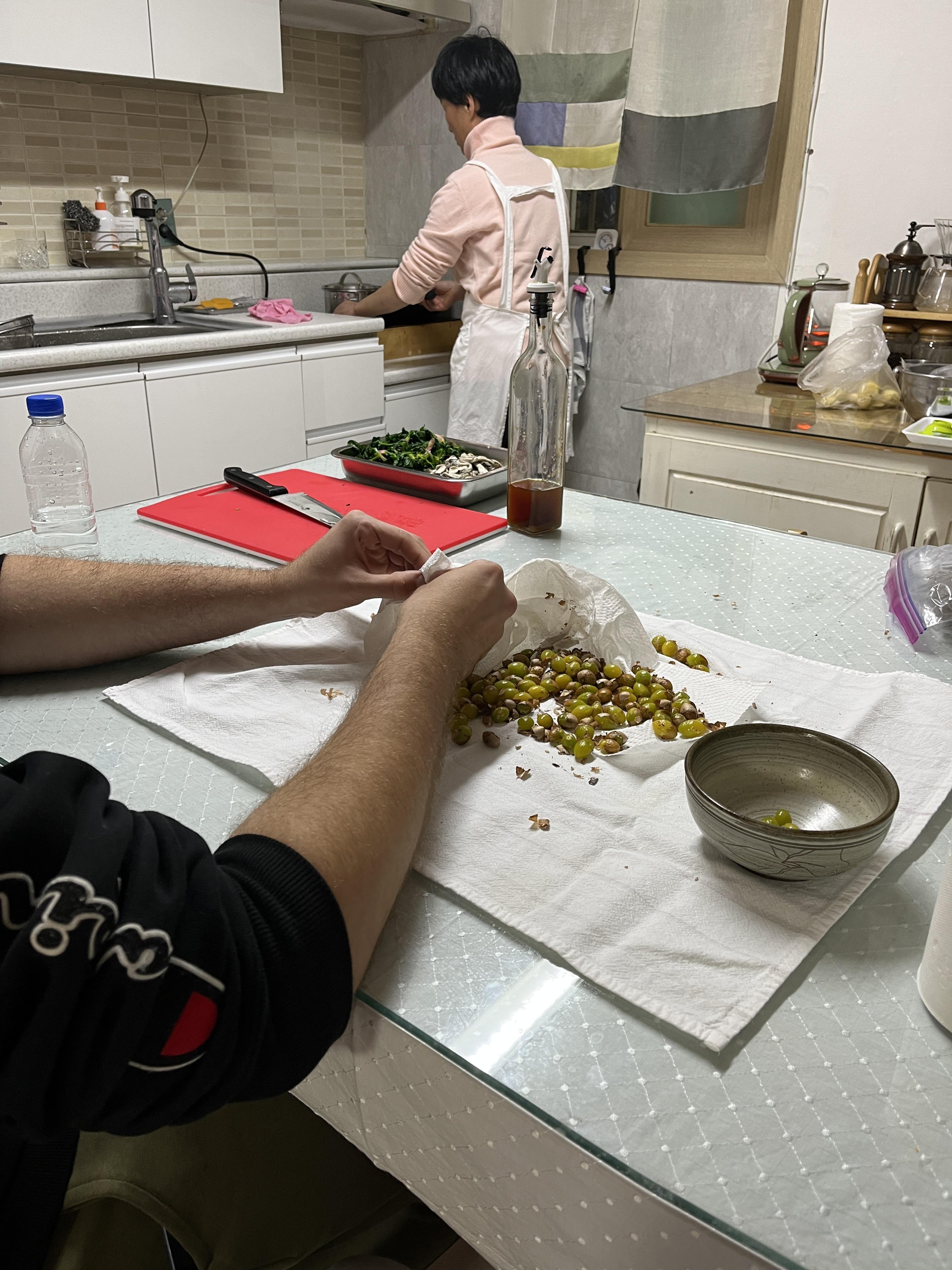집에 도착해서 엄마가 저녁준비를 도와달라고 하셔서 남친이랑 같이 은행을 열심히 깠다. 퀘스트 수행 후 밤과 은행이 올라간 찰밥과 잡채, 찹쌀 김부각, 돼지 등갈비찜을 보상으로 얻었다. 엄마밥 최고🥰