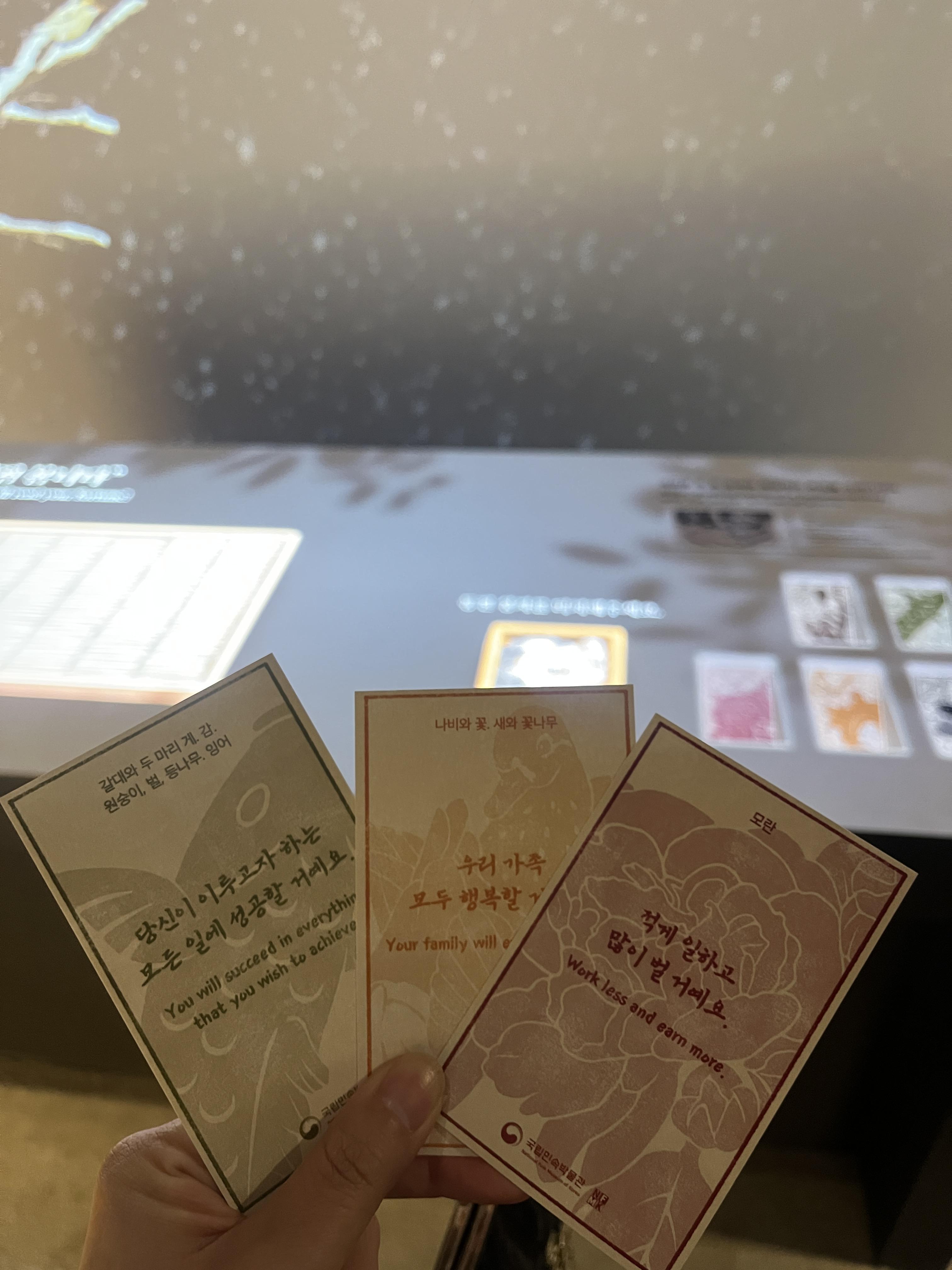 서울 대부분의 궁은 한복관람시 무료관람이라서 입장료는 내지 않았다. 경복궁 안에 국립 민속 박물관도 있었는데 소소하게 체험할 수 있는 참여형 미디어 전시가 있어서 재밌었다. 같은 건물에 어린이 박물관도 함께 있어서 아이들을 위한 전시가 매번 다른 주제로 열린다. 어린이는 아니지만 관람해보고 싶었는데 사전예약이 필수여서 실패^^;